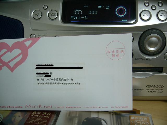 さて、昨日から続々と、こちらが届いてるとゆう記事を読ませてもらって、早く僕の元にも来ないかなとやきもきしていましたが、先ほど郵便受けを見たら、先日のバースデーカードに引き続いて、お馴染みのピンクの封筒を見つけました(^o^)